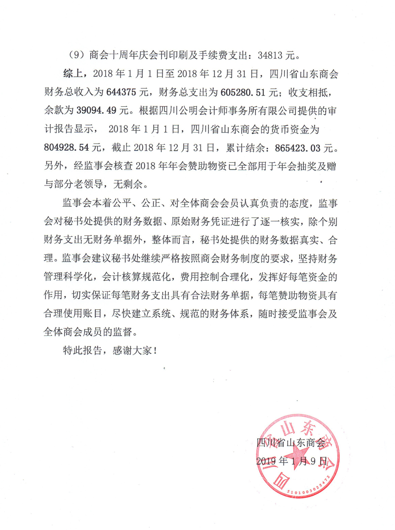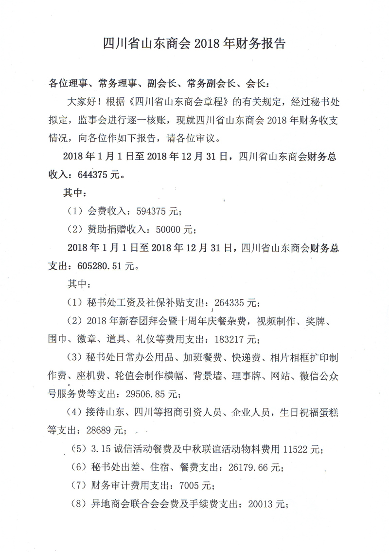 • 四川省山东商会2017年财务工作报告及2018年预算
