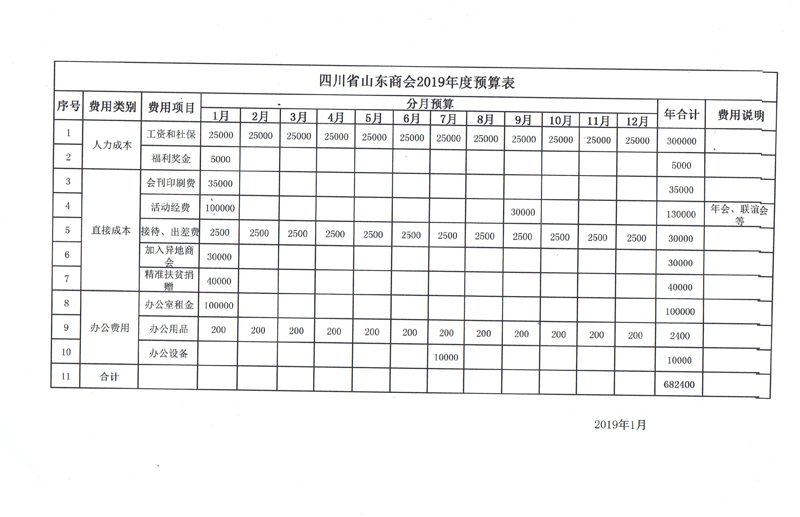 四川省山东商会2018年财务工作报告及2019年预算